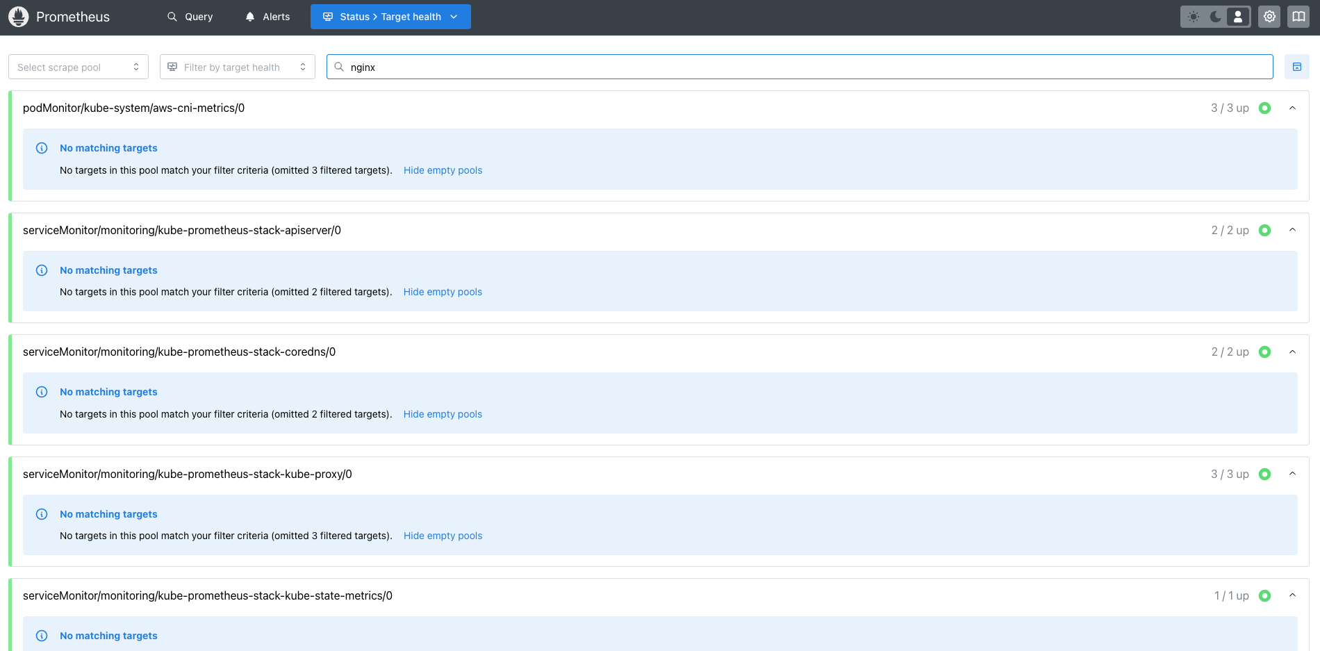 - rule health : 레코딩 규칙 및 알람 규칙 상태 확인