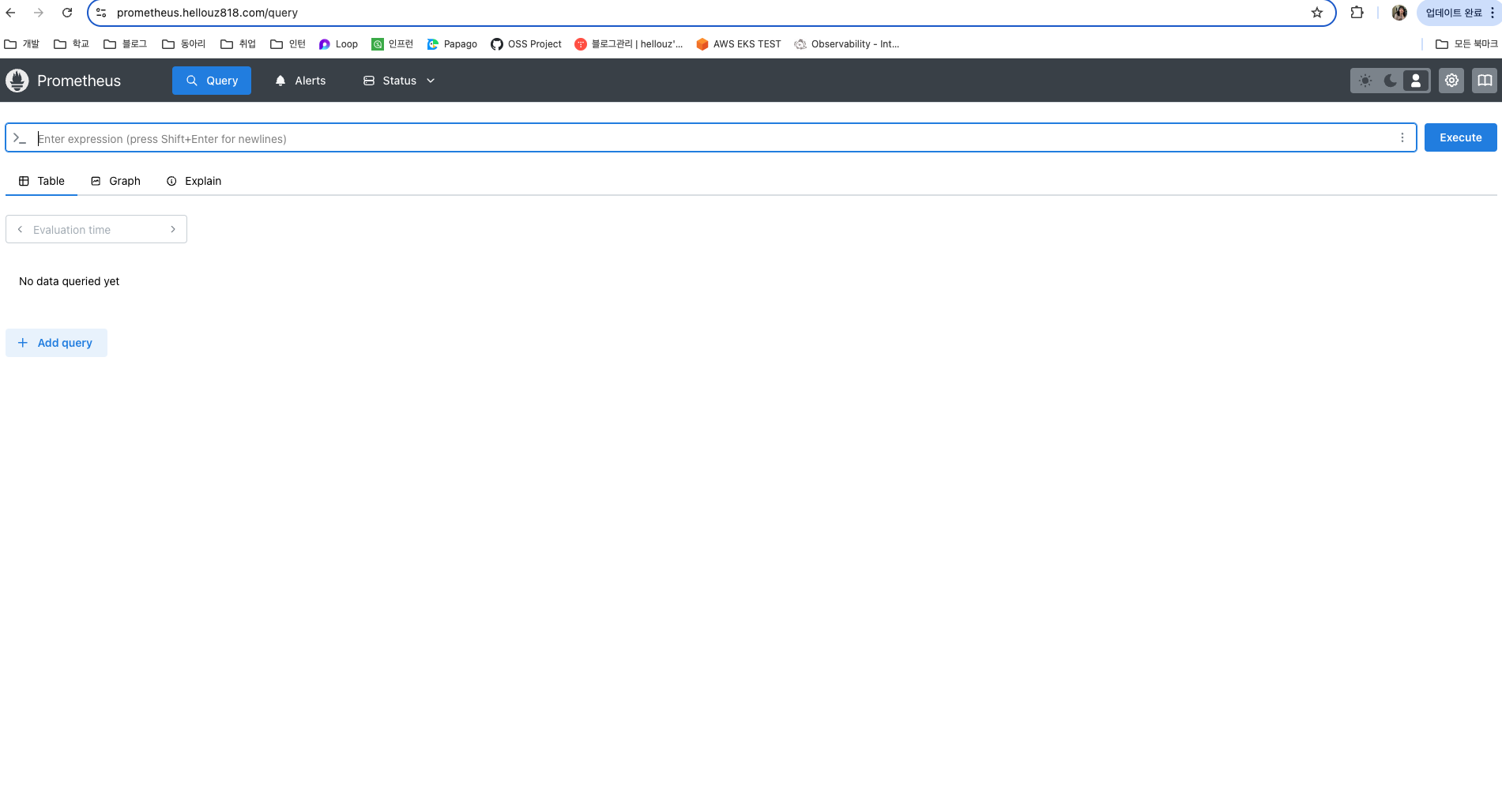 grafana와 prometheus가 잘 설치 되었고, ALB를 통해 도메인과 연결되어 라우팅 되는 것도 확인할 수 있었습니다.